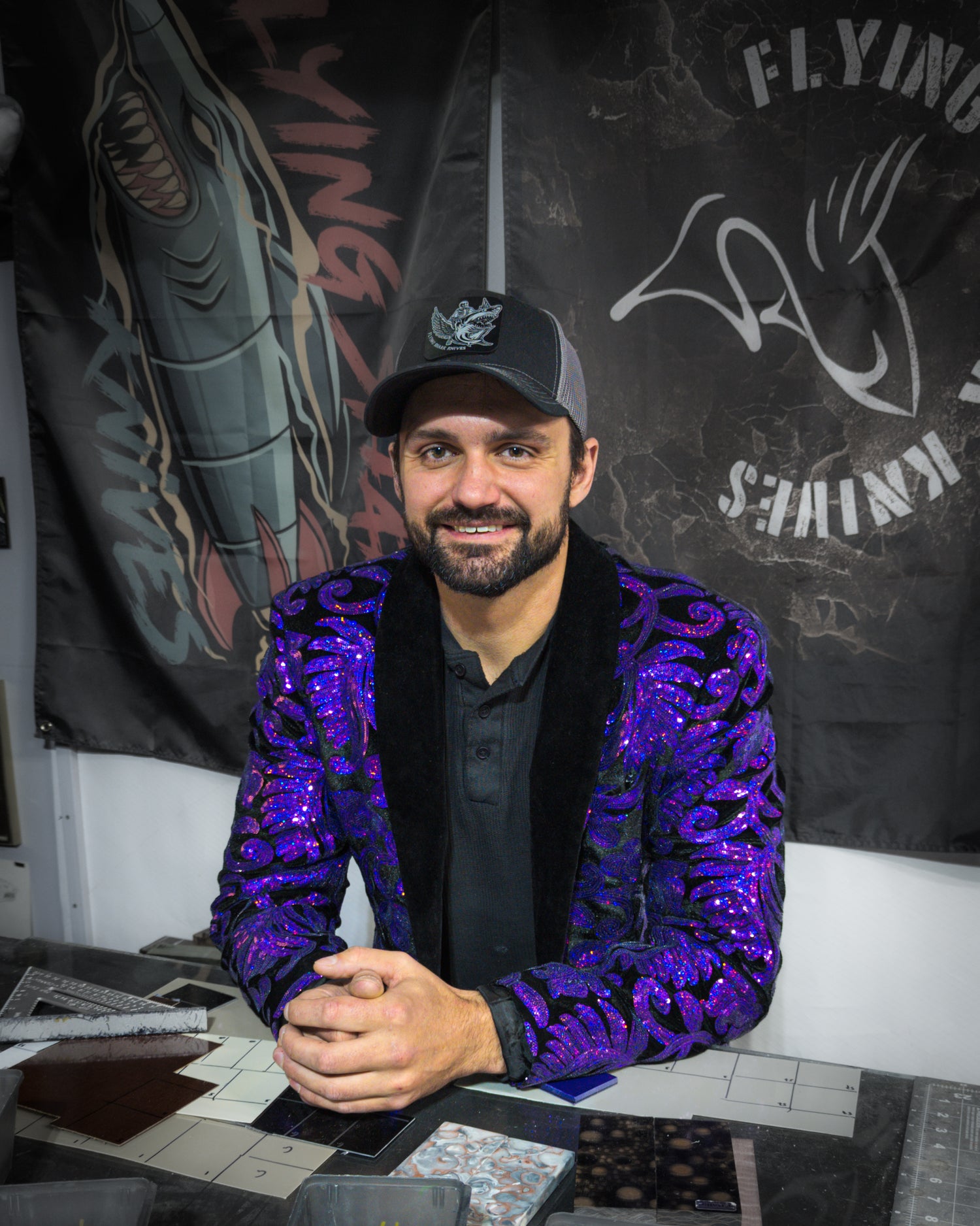 Kyle “Sharky” Nelson started making combo scales in October of 2018. Already an avid knife collector, he decided he wanted to take the next step into the industry and began crafting custom and one-of-a-kind knife scales. Since 2018, Sharky has made over 2000 sets of combo scales for knife makers all over the world, making him one of the preeminent experts in the art form. Driven by a love for helping others, Sharky puts flair and passion into both his professional work, and his personal relationships across the knife-making world.