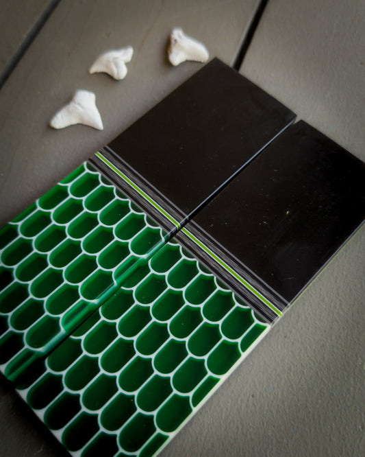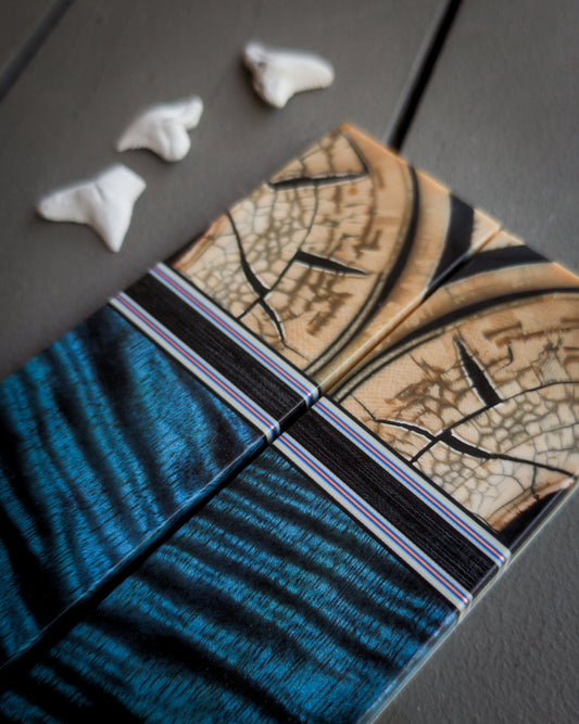 I have ordered several sets of scales, and I am impressed every time I unwrap them. He uses only top notch materials, and his execution is as good as it gets. Whenever I need a set of scales for a special knife, you can bet they are “Sharky Scales”!