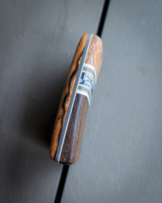 I have ordered several sets of scales, and I am impressed every time I unwrap them. He uses only top notch materials, and his execution is as good as it gets. Whenever I need a set of scales for a special knife, you can bet they are “Sharky Scales”!