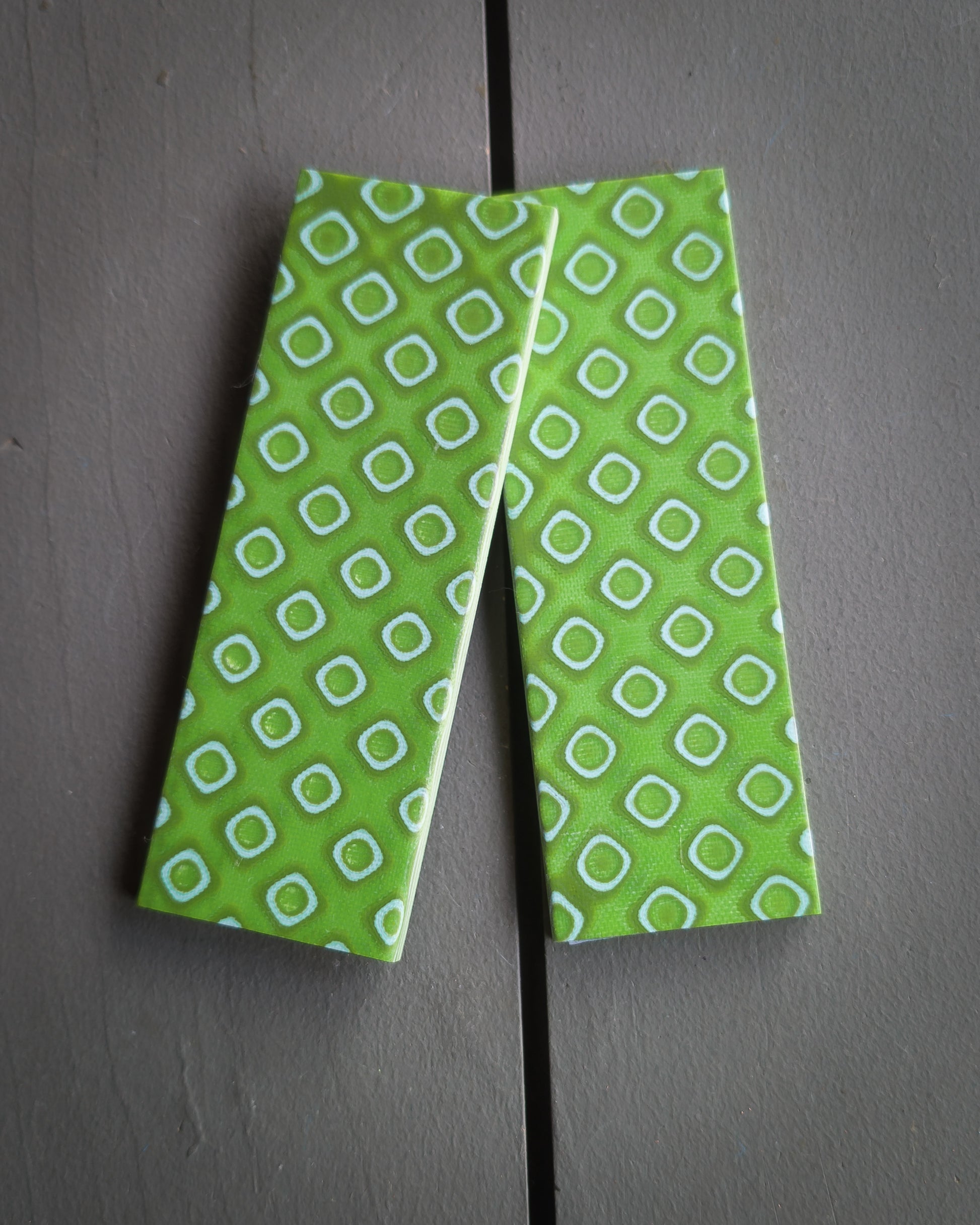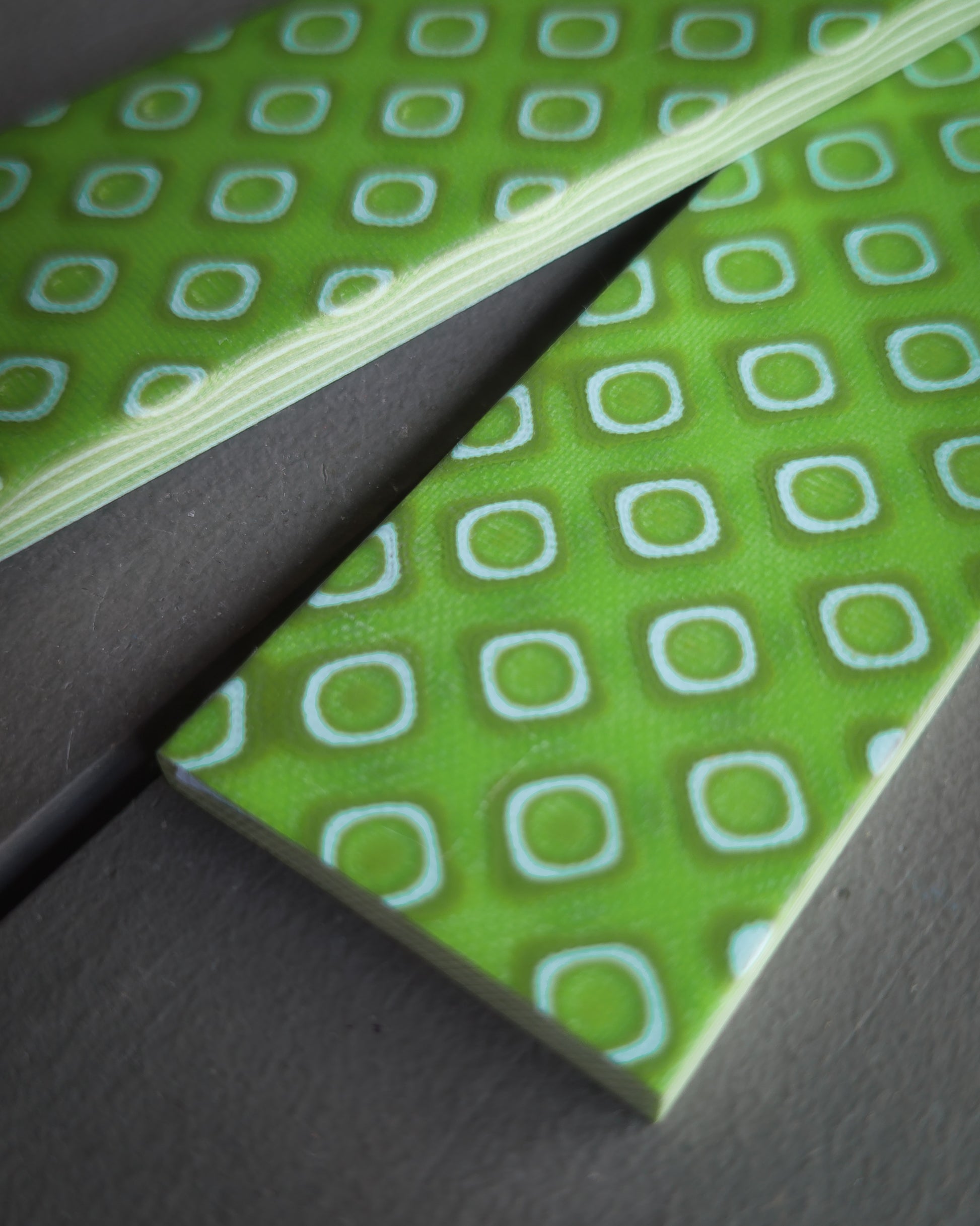 Material: Green, dayglow, and tiffany "bullet" G10 from Current Composites.