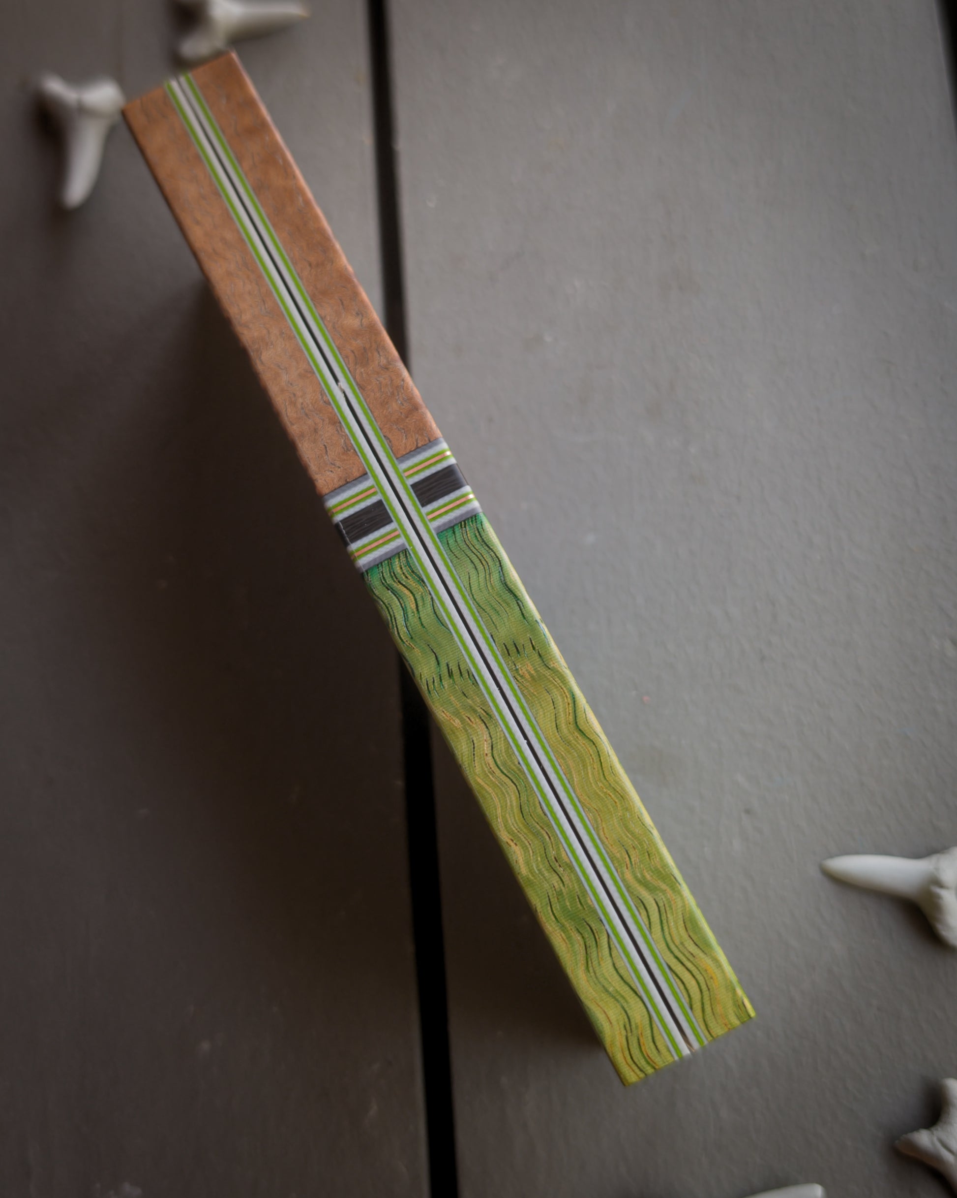 Material: Green movingui. Two tone koa. Carbon fiber spacer with grey, copper, and toxic accents. Toxic and grey liners.
