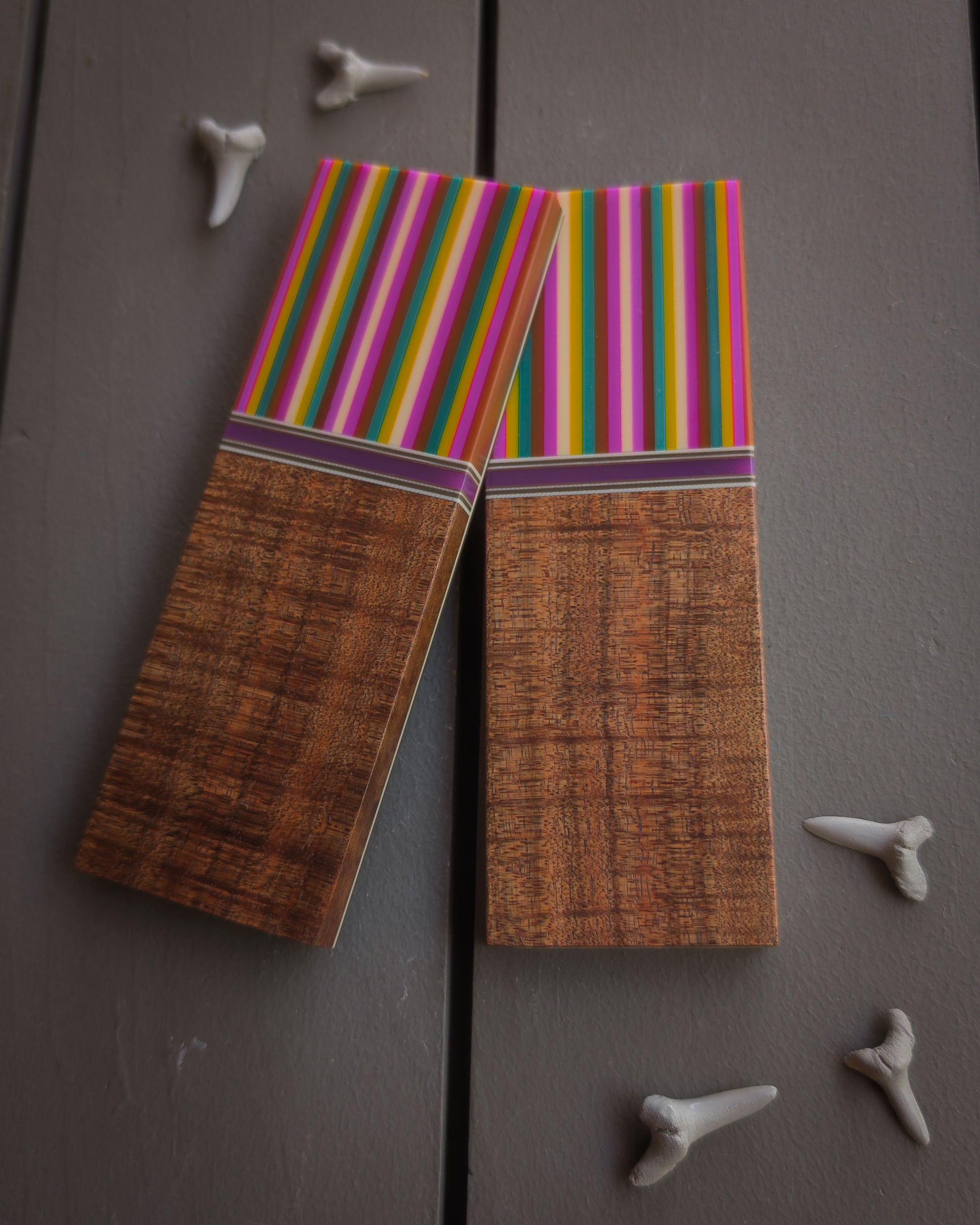 Segmented handle scales offer knife enthusiasts and custom knife makers a fantastic opportunity to create unique and personalized designs. By dividing the handle into distinct segments, each section can be crafted from different materials, colors, or textures. This not only enhances the aesthetic appeal of the knife but also allows for a customized feel and improved functionality. The use of diverse materials in segmented scales provides the opportunity to blend durability, grip, and visual flair. Knife makers can experiment with contrasting materials such as wood, G-10, carbon fiber, or even metals, creating a visually striking and ergonomic handle. Ultimately, the segmented handle design allows for a level of creativity and individuality that sets a custom knife apart, making it a functional work of art tailored to the preferences and style of the user.