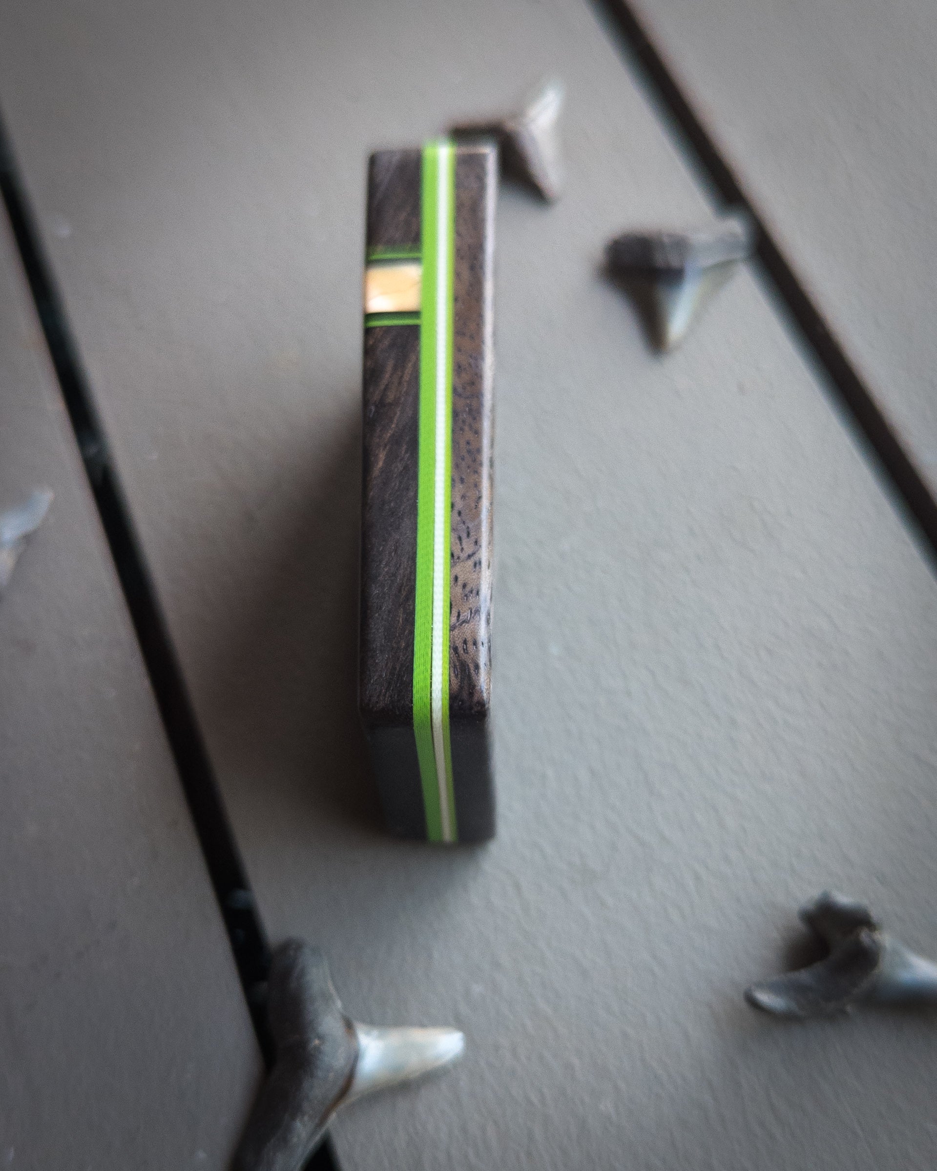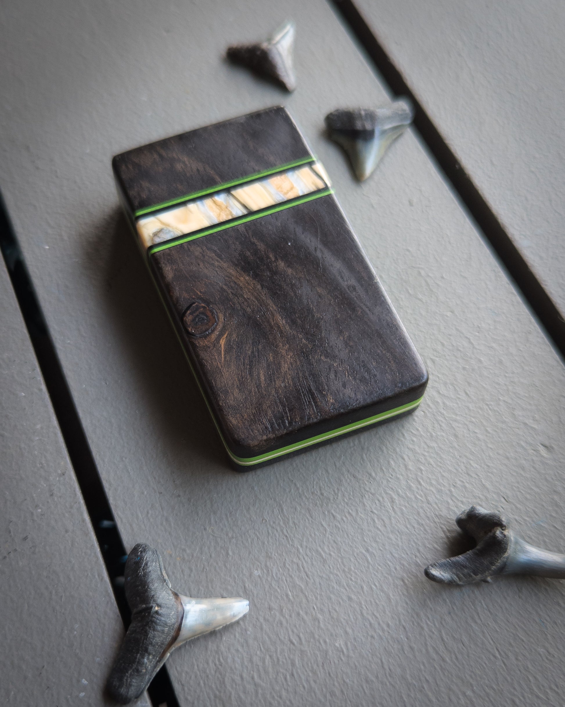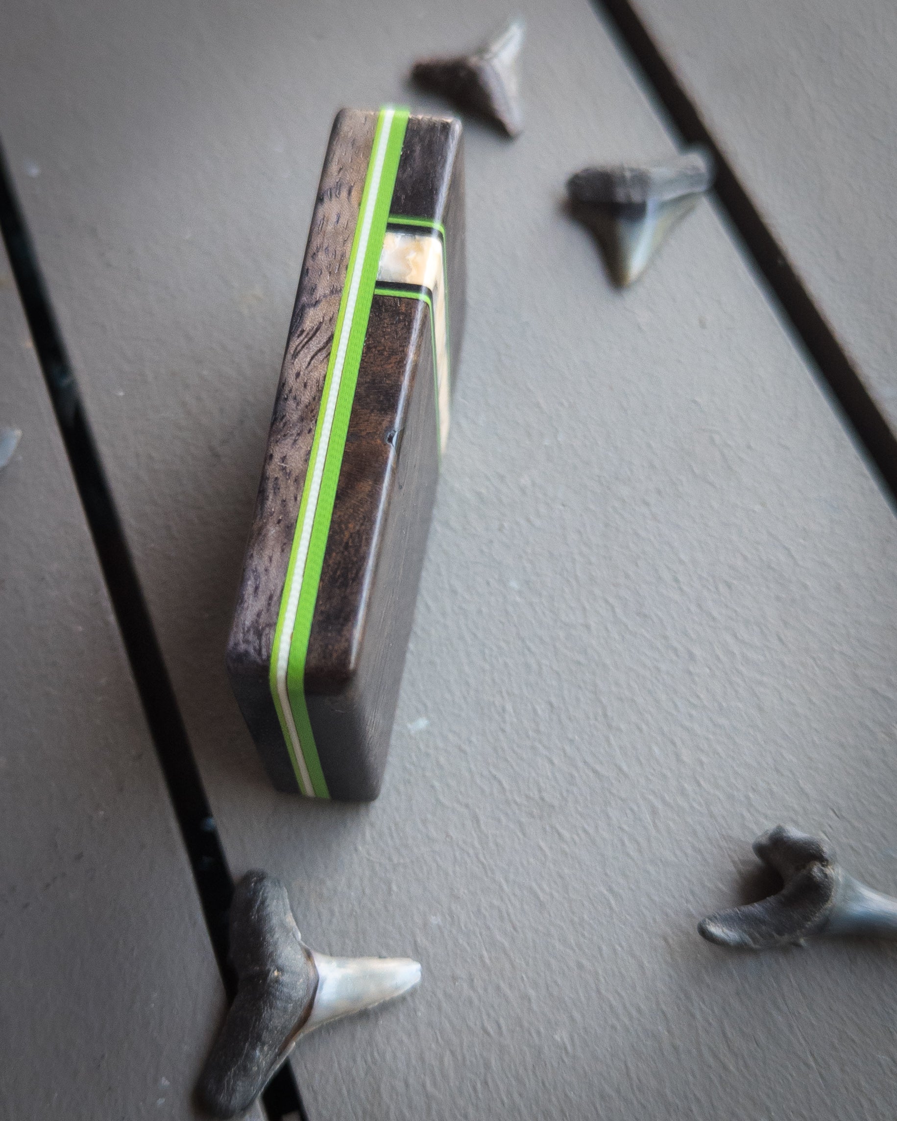 Materials: Black dyed oak. Black dyed mango. Ivory mammoth tooth. Other stuff.
