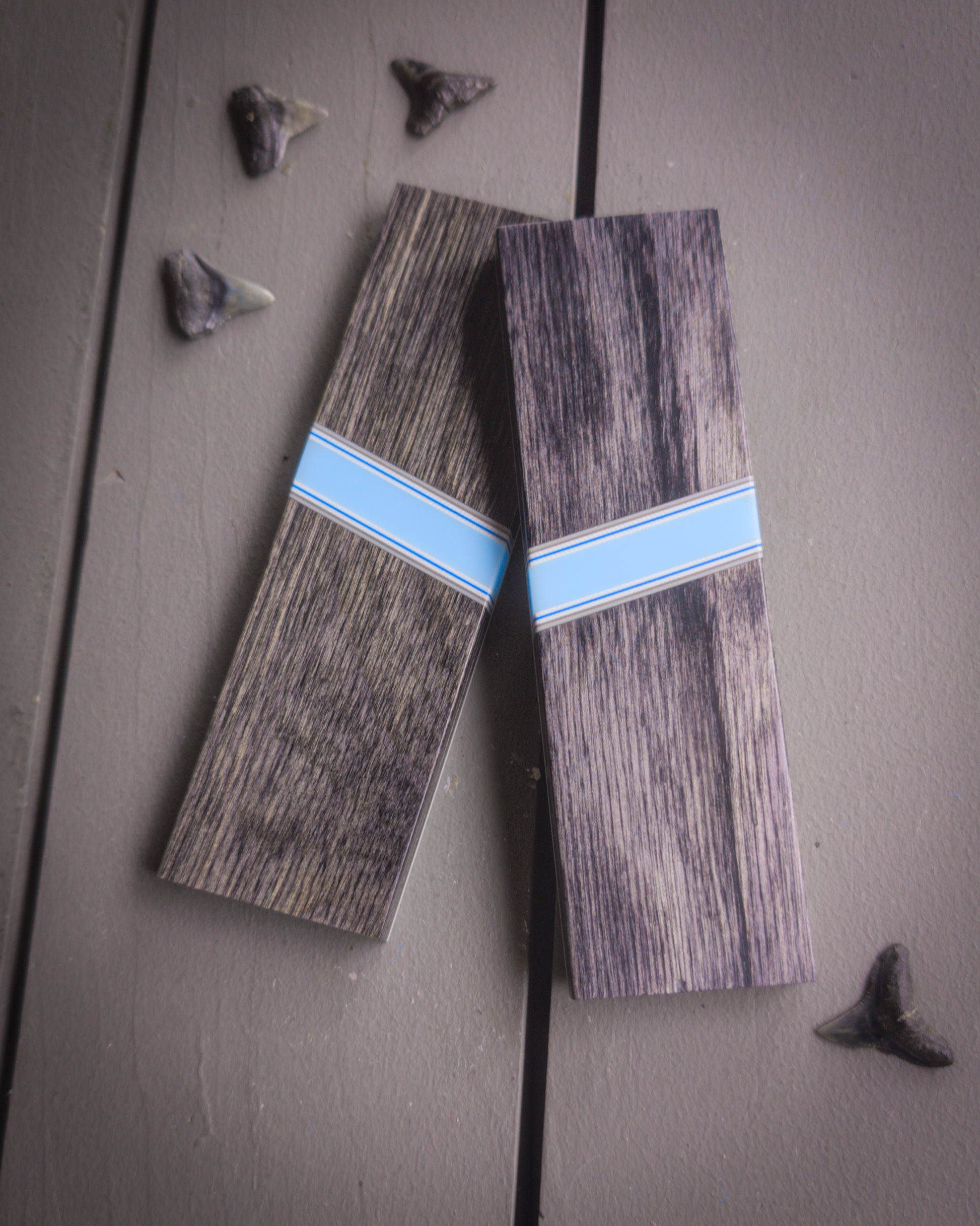 Material: Grey Libertywood. Ghost blue spacer with white, blue, and grey accents. White and grey liners.